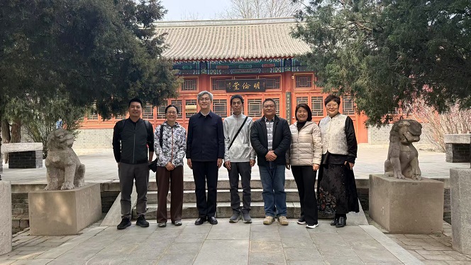 3月27日下午,荣宝斋出版社编辑、画家孙虎城一行5人莅临我院建筑艺术系缂丝大师工作室考察交流。学院院长陈雪平陪同接待并主持座谈,党政办公室、组织宣传部、教务处及建筑艺术系相关负责人与专业教师参与了此次活动。
