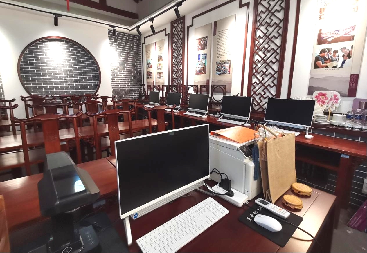 工作室拥有专属场地300㎡,划分技艺实训区、作品展示区、研发区三大功能区域,配套核心设备10台套,包括缂丝专用织机、数字化设计工作站、文创打样设备、高清拍摄设备等,可同时满足20人开展实训教学与研发创作。